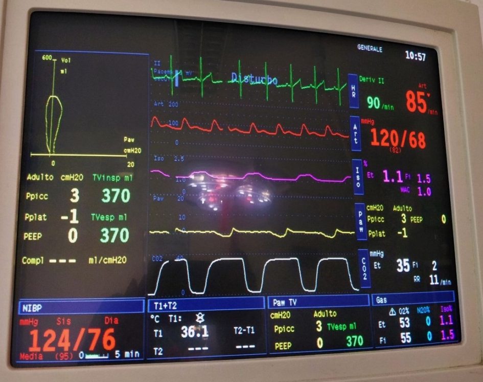 Detto questo veniamo al terzo fattore, la gestione anestesiologica e il monitoraggio del paziente. Ogni animale sottoposto ad anestesia generale DEVE essere monitorato, ma cosa è corretto andare a controllare? Tanti tanti anni fa ci si accontentava di controllare che il paziente respirasse e si partiva dal presupposto che “se l’animale respira, il cuore batte e tutto va bene”, è davvero così? Grazie alla sempre maggiore disponibilità di tecnologie avanzate al servizio dei nostri animali adesso si può e si deve pretendere di più. I nostri pazienti vengono monitorati durante l’intera procedura per verificare l’attività elettrica del cuore (elettrocardiogramma), la pressione arteriosa, il ritmo e la meccanica respiratoria (spirometria), l’eliminazione di anidride carbonica (capnografia) e la temperatura corporea. A questo si aggiunge il controllo costante del livelli di anestetici inalatori e dell’ossigeno. Nei pazienti critici è utile aggiungere il monitoraggio della pressione arteriosa con metodica invasiva che ci permette una maggiore accuratezza nella misurazione e un controllo costante della pressione battito per battito e il monitoraggio della produzione urinaria.
